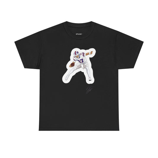 Josh Allen Cartoon Hurdle Graphic Tee Shirt - NFL Football T-Shirt Fan Apparel
